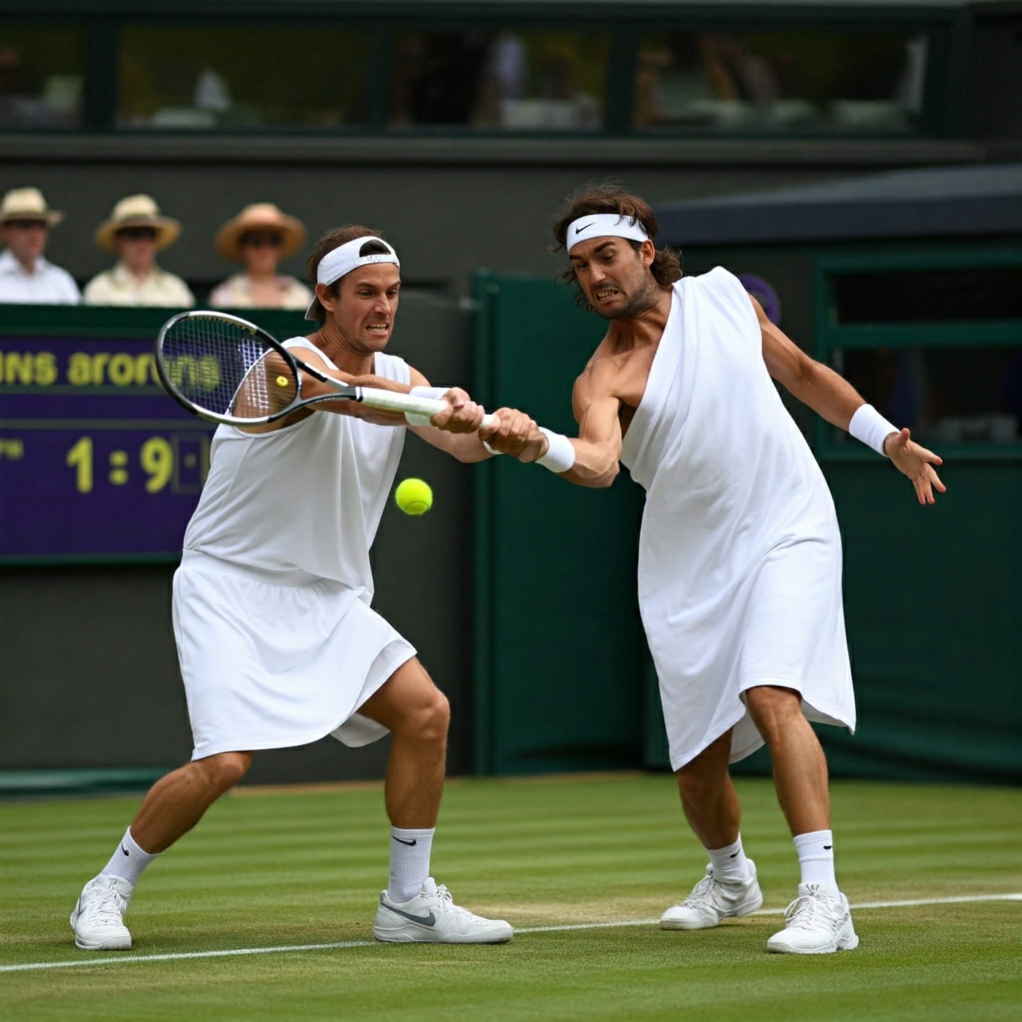 Wimbledon, London – Hold onto your strawberries and cream, folks, because Wimbledon has just witnessed a spectacle so bizarre, so utterly absurd, that it’s sent shockwaves through the very fabric of the spacetime continuum! Greek gladiators of the green, Giannis Socrates and Stefanos Aristotle, have transformed the hallowed grounds of Centre Court into a philosophical battleground, … Continue reading “Love” Means Never Having to Say You’re Sorry… for a 13-Hour Philosophical Filibuster on Centre Court! Wimbledon in Chaos as Greek Philosophers Redefine “Match Point”!
