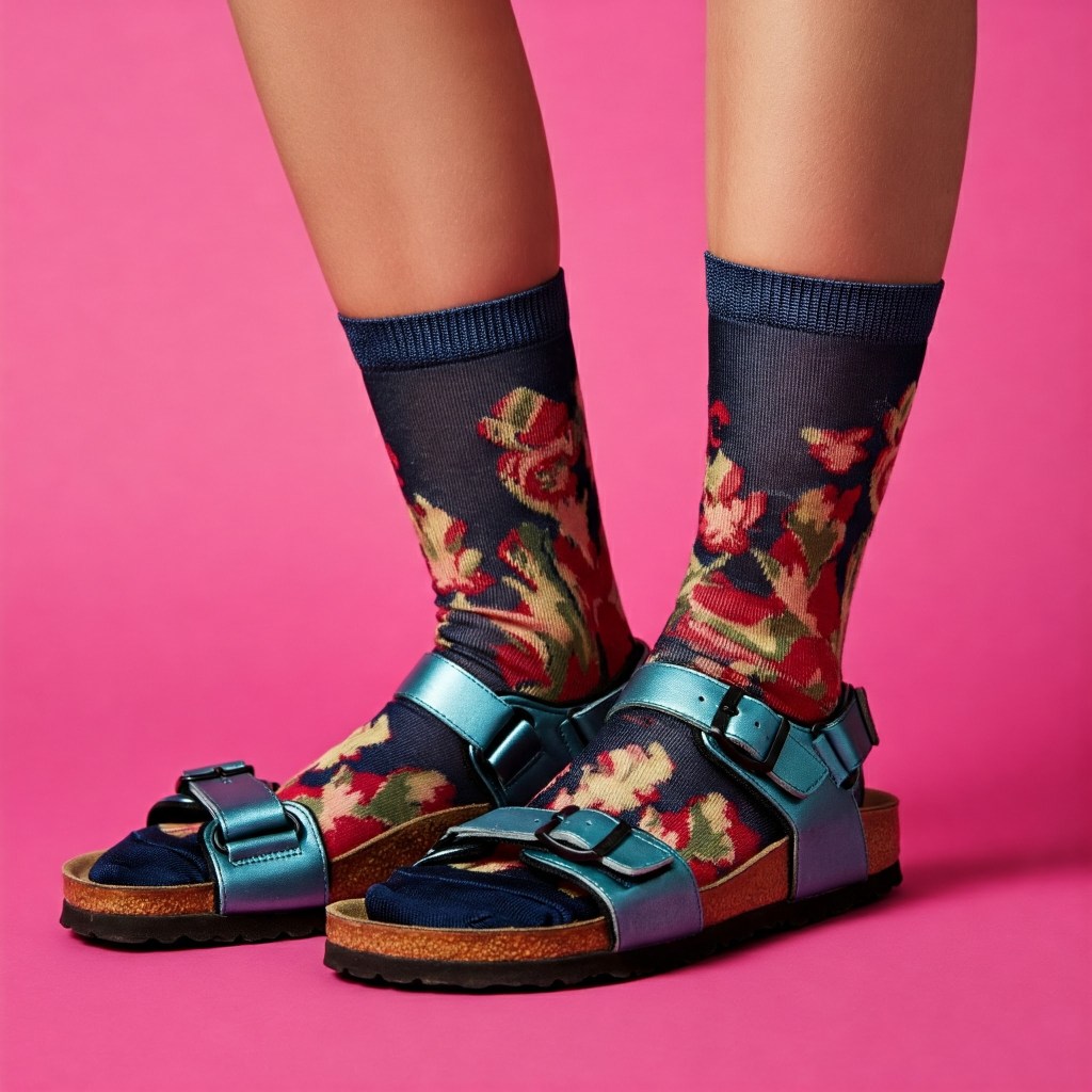 And who knows, my dears, perhaps one day, the sock-and-sandal ensemble will be gracing the catwalks of Milan, the pages of Vogue, and even the red carpets of Hollywood. Until then, let us stand united in our sock-and-sandal solidarity, a beacon of comfort and chic in a world that often takes itself far too seriously. After all, life’s too short for uncomfortable footwear and fashion fascism. Let those toes breathe, I say! Let them wiggle with joy! Let them revel in the glorious freedom of the sock-and-sandal revolution!Sources and related content